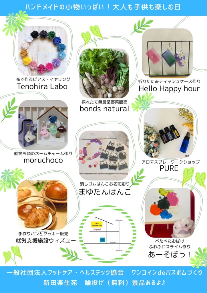様々なワークショップに加え、無農薬野菜販売、手作りパンやクッキー販売のほか